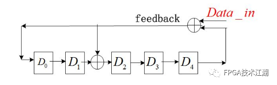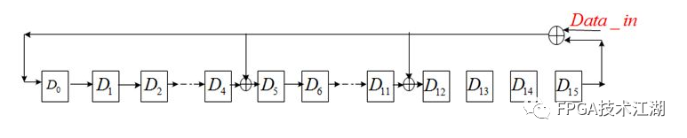 注意對(duì)比與偽隨機(jī)數(shù)產(chǎn)生器中該反饋支路的區(qū)別。