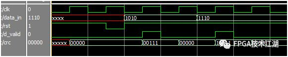 仿真結(jié)果如下:得到的是數(shù)據(jù)0xaa和0xf0的CRC校驗(yàn)碼,為驗(yàn)證結(jié)果的正確性,可以按照模2法則手工計(jì)算一下。