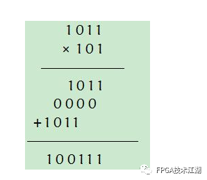 多位二進(jìn)制模2乘法類似于普通意義上的多位二進(jìn)制乘法,不同之處在于后者累加中間結(jié)果時(shí)采用帶進(jìn)位的加法,而模2乘法對(duì)中間結(jié)果的處理方式采用的是模2加法。例如1011×101=100111,列豎式計(jì)算: