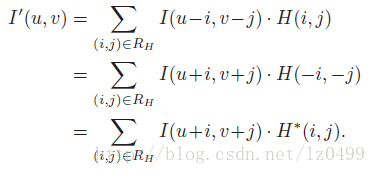 當(dāng)濾波函數(shù)H*(I,j) = H(-I,-j)進(jìn),H(I,j)進(jìn)行了180度旋轉(zhuǎn)之后,其結(jié)果與線性濾波時(shí)一樣的。