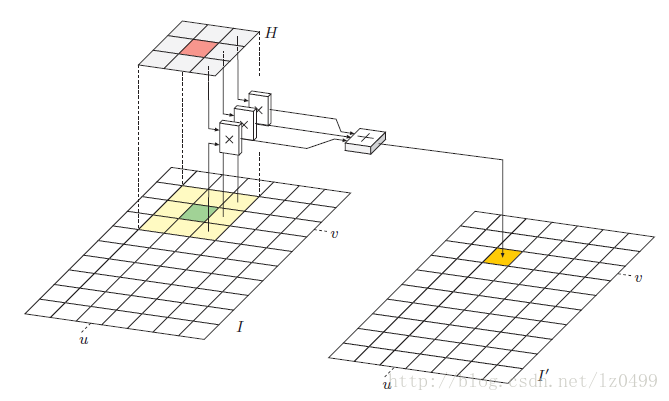 假設(shè)二維函數(shù)I和H,對(duì)應(yīng)的卷積操作可以表示為: