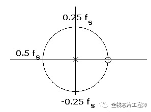 其中o表示零點(diǎn),x表示極點(diǎn)。從z=1也就是單位圓上角度為零(也是頻率為零)的點(diǎn)開始,此處z=1有一個零點(diǎn),根據(jù)規(guī)律1,顯然在頻率為零時(shí)系統(tǒng)響應(yīng)為零。