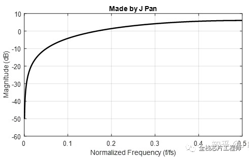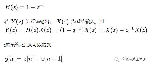 這一個差分,對應(yīng)連續(xù)系統(tǒng)的微分。我們知道微分對應(yīng)的是傳遞函數(shù)是s,穩(wěn)態(tài)時(shí)為s=jw,這顯然是一個高通濾波器。