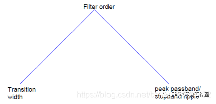 濾波器設(shè)計(jì)中的設(shè)計(jì)設(shè)定可形象地比喻為下圖所示的三角形,每個(gè)設(shè)定對應(yīng)其中一個(gè)角。