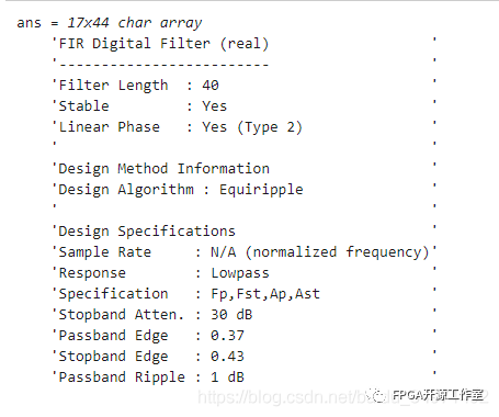 可以使用 info 函數(shù)獲取用于設(shè)計(jì)濾波器的參數(shù)的有關(guān)信息
