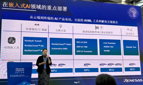 沈清女士指出,AI產(chǎn)業(yè)的快速發(fā)展正驅(qū)動(dòng)各行業(yè)升級(jí),MCU已從單一控制器演變?yōu)橹悄軟Q策核心。這種轉(zhuǎn)變對(duì)算力、功耗、實(shí)時(shí)性和安全性提出了更高要求。瑞薩的嵌入式AI戰(zhàn)略圍繞這些需求,通過(guò)硬件創(chuàng)新、軟件優(yōu)化和生態(tài)建設(shè),為客戶提供高效、靈活的解決方案。