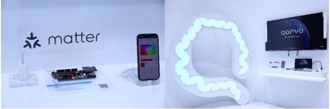Qorvo在現(xiàn)場展出的這套氛圍燈解決方案由約50個(gè)照明模塊組網(wǎng)實(shí)現(xiàn),基于Qorvo Matter技術(shù)實(shí)時(shí)聯(lián)動(dòng),支持用戶端視頻色相采集、音樂律動(dòng)響應(yīng)等智能交互功能,為現(xiàn)代智能照明帶來了更具差異化的沉浸式體驗(yàn)。
