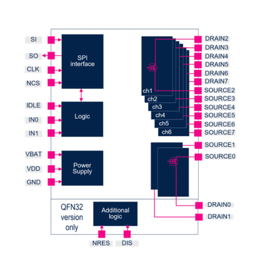 L9026采用HTSSOP24封裝和VFQFPN32小封裝,緊湊的尺寸使其更具競爭優(yōu)勢,非常適合空間受限的汽車應(yīng)用場景。新增的安全引腳增強(qiáng)了控制功能,提高了系統(tǒng)管理的靈活性,在關(guān)鍵應(yīng)用中效果更好。