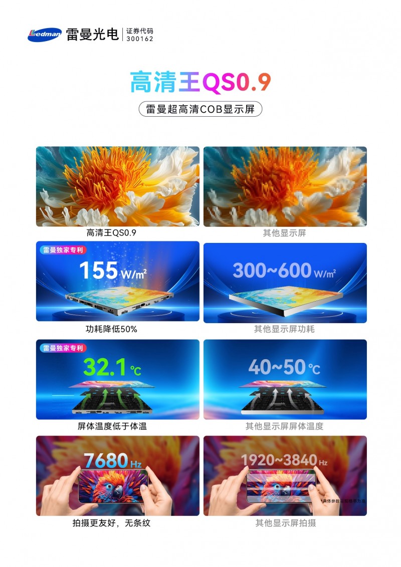當(dāng)8K超高清顯示成為LED行業(yè)的未來(lái)趨勢(shì),如何讓 “巨幕沉浸式體驗(yàn)” 突破概念、落地應(yīng)用?LED 顯示屏行業(yè)首家A股上市企業(yè)、技術(shù)引領(lǐng)者雷曼光電,今天全新推出的下一代高清王COB系列顯示產(chǎn)品(主推型號(hào) QS0.9),給出了清晰答案。
