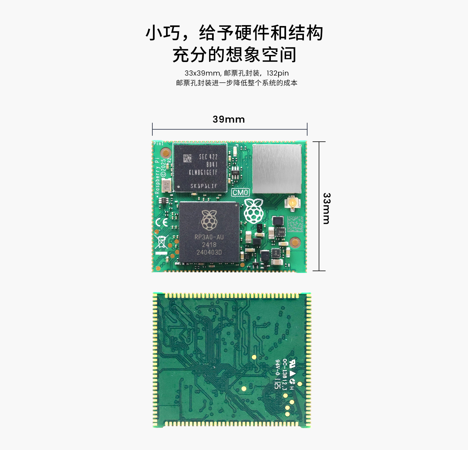 RaspberryPi史上最小,首個郵票孔封裝的計算機模組