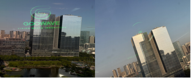 谷東新一代光波導(dǎo)模組在顯示效果方面表現(xiàn)優(yōu)異,下面再繼續(xù)看看跟國(guó)內(nèi)知名友商的直觀對(duì)比效果。