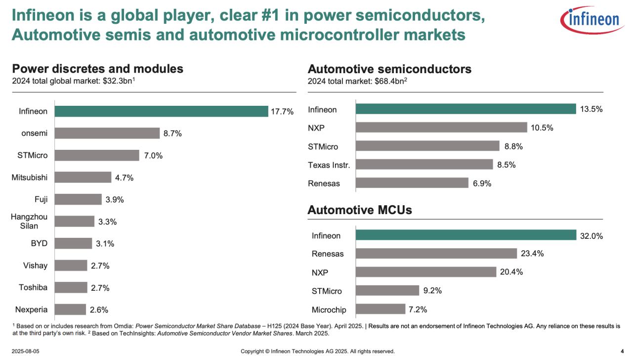 從去年的數(shù)據(jù)來看,英飛凌在功率半導(dǎo)體市場表現(xiàn)卓越,特別是在功率分立器件和模塊市場份額位居第一。中國是全球最大的新能源汽車(EV)市場,英飛凌的高性能MCU和功率半導(dǎo)體將直接支持中國EV產(chǎn)業(yè)鏈的快速發(fā)展。在光伏儲能領(lǐng)域,其SiC和GaN技術(shù)助力高效能源管理,契合中國可再生能源擴張需求。在工業(yè)自動化中,英飛凌的功率模塊和MCU、傳感器技術(shù)相結(jié)合賦能中國制造升級。而在AI數(shù)據(jù)中心領(lǐng)域,英飛凌從電網(wǎng)到核心的一站式方案,將會為低碳化數(shù)據(jù)基礎(chǔ)設(shè)施提供有力支持。