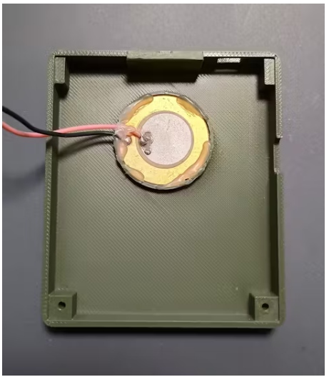 在焊接到PCB之前,壓電揚(yáng)聲器被熱粘到后殼外殼上