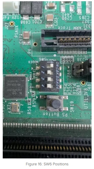 ?設(shè)置啟動(dòng)方式(ZCU102):對(duì)于ZCU102,將啟動(dòng)方式開(kāi)關(guān)(ZCU102為SW6)設(shè)置為從SD卡啟動(dòng):