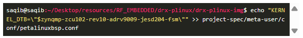echo "KERNEL_DTB=\"${dts_to_use}\"" >> project-spec/meta-user/conf/petalinuxbsp.conf .