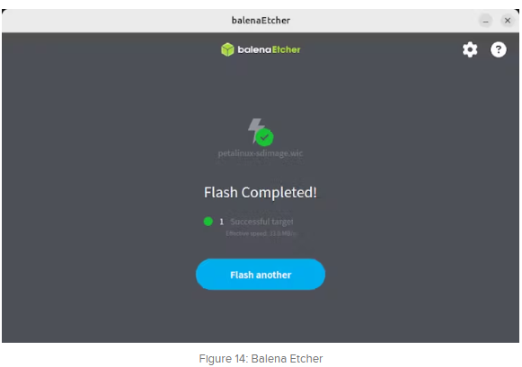 如果從SD卡引導(dǎo)(而不是直接引導(dǎo)到INITRD或INITRAMFS), PetaLinux提供了一個(gè)方便的內(nèi)置實(shí)用程序來(lái)創(chuàng)建完整的SD卡映像。此工具將所有內(nèi)容打包到。可以使用諸如balenaEtcher、Rufus或dd等實(shí)用程序?qū)D像文件閃入SD卡。