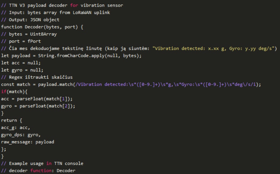 這里指出的變化,從它被認(rèn)為是一個(gè)振動。在適當(dāng)調(diào)整這些參數(shù)后,傳感器對正常振動沒有響應(yīng)。只有當(dāng)振動超過限制時(shí),LoRa應(yīng)用程序才會發(fā)送消息,并知道發(fā)生了什么變化。這可以解釋為是否有東西簡單地掉到一邊(然后振動不會重復(fù)),或者設(shè)備是否已經(jīng)失效,振動將是周期性的。