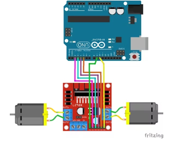 現(xiàn)在,將您的L298n引腳與Arduino Uno引腳連接