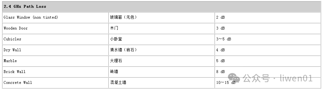 2.4G WiFi典型穿透損耗經(jīng)驗(yàn)值