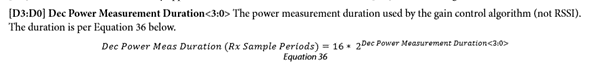 平均功率測(cè)量方法使抽取一系列樣本取平均,抽取樣本的持續(xù)周期由寄存器設(shè)置,地址0x15c[D3:D0]