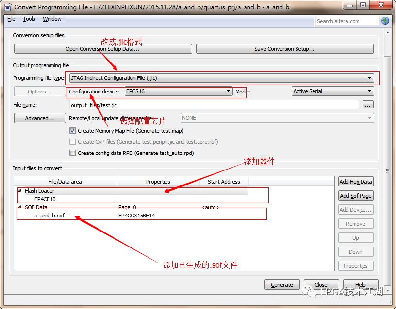 為了解決這個(gè)問題,使我們的FPGA重新上電后不丟失之前下載的程序,我們可以把.sof文件轉(zhuǎn)成.jic文件,然后通過JTAG方式下載到FPGA中去,就可以解決這個(gè)問題了。