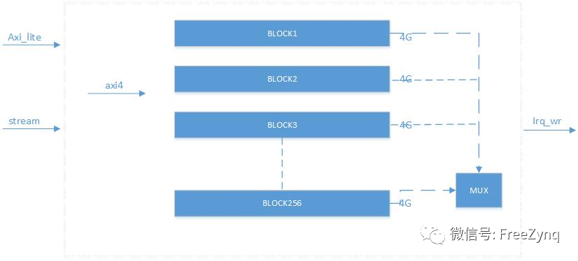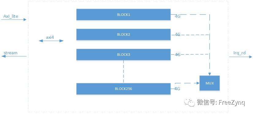 主機或者cpu通過axi_lite接口配置寄存器,分配每一個block塊大小,對應的內存起始地址,共分配多少個block等參數(shù),同時block大小等參數(shù)支持動態(tài)調整。