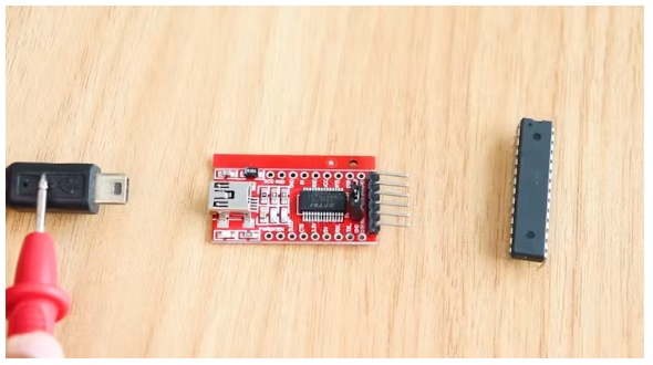因此,為了使用USB對Atmega328進行編程,來自芯片的UART數(shù)據(jù)被發(fā)送到另一個可以將UART轉(zhuǎn)換為USB的模塊,反之亦然,這將把兩種技術(shù)橋接在一起。在我們的案例中,我們將使用FTDI模塊來處理ATMega328和計算機之間的通信。這就是我們要連接FTDI模塊的地方。FTDI模塊的Tx引腳連接ATMega328的Rx引腳,F(xiàn)TDI模塊的Rx引腳連接ATMega328的Tx引腳。