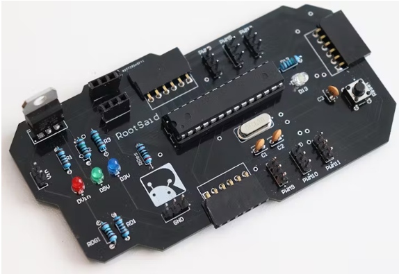 這個Arduino板的設(shè)計方式使您可以輕松地將傳感器和伺服電機直接連接到板上。如果你想要,這些是連接伺服電機的引腳。