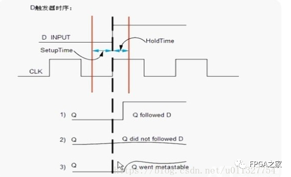 D觸發(fā)器有個明顯的特征就是建立時間(setup time)和保持時間(hold time)