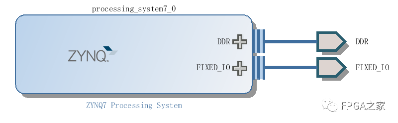 (4)在 Diagram 界面里點(diǎn)擊"Run Block Automation"完成對(duì) ZYNQ7 Processing System IP核的配置,生成外部 ZYNQ 系統(tǒng)的外部鏈接 IO 管腳。