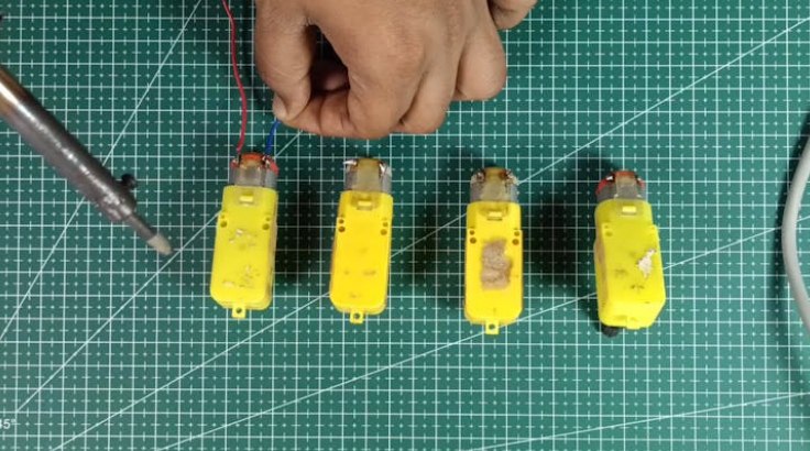 ?把電線焊到減速電機(jī)上。