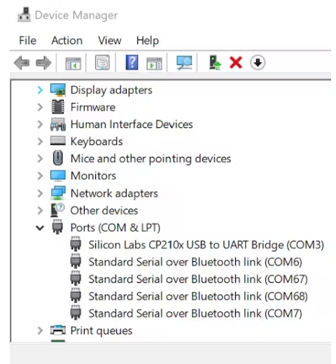?在Ports(COM & LPT)部分,您將看到類似Silicon Labs 210x等的名稱。這意味著你的電路板被正確檢測。