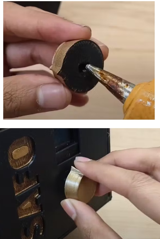 最后,在表盤上涂一些熱熔膠,并將其安裝在編碼器的金屬棒上,如圖所示。