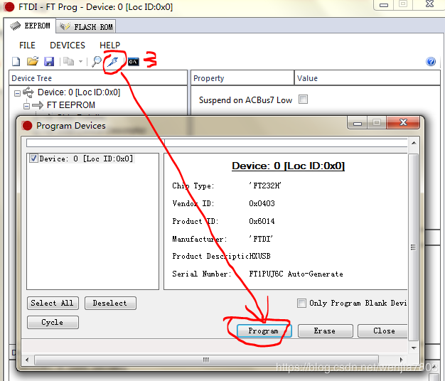 FT232H在出廠的時(shí)候,默認(rèn)是UART模式,配置長同步FIFO模式,需要通過官方提供的配置軟件FT_PROG進(jìn)行配置,配置過程十分簡單,如下: