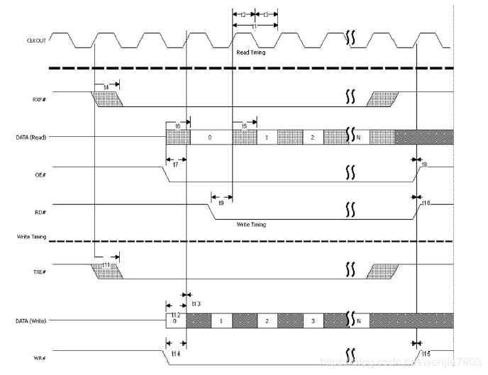 通常來說,為了處理好異時(shí)鐘域數(shù)據(jù)傳輸問題,都會(huì)在FPGA端例化一個(gè)FIFO來作為與USB接口交互的緩存。在數(shù)據(jù)發(fā)送有個(gè)需要注意的地方,當(dāng)發(fā)送速率比USB傳輸速率快,F(xiàn)T232H內(nèi)部緩存被填滿的時(shí)候(TXE#被拉高),會(huì)出現(xiàn)丟數(shù)據(jù)情況。在處理的時(shí)候需要特別注意一下。