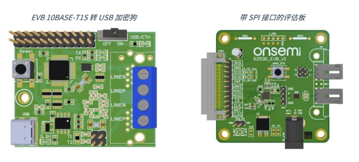 對于 NCV7410 10BASE-T1S 以太網收發(fā)器, 當前已有兩款評估板 (EVB) 可用于評估。 如需獲取評估板和配套的軟件圖形用戶界面 (GUI), 請聯系安森美銷售人員。 評估板按連接方式分為兩種版本: