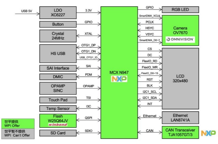 本方案以NXP新推出的MCX N系列MCU作為主控,該系列作為高性能、低功耗微控制器,搭載ARM® Cortex®-M33內核,致力于實現(xiàn)高性能與低功耗的完美平衡。它配備智能外設和片上加速器,能輕松提供多任務功能,同時確保高能效。此外,MCX N947還搭載了NXP專為機器學習應用設計的eIQ® Neutron神經處理單元(NPU),大幅提升數據處理能力。此外,MCX N947集成的低功耗高速緩存進一步增強了系統(tǒng)性能,并且雙塊Flash存儲器與帶ECC檢測的RAM可為系統(tǒng)提供額外保護與高級信息安全功能。