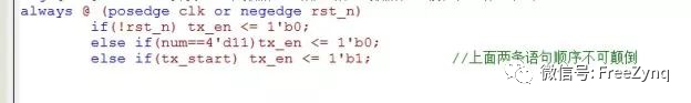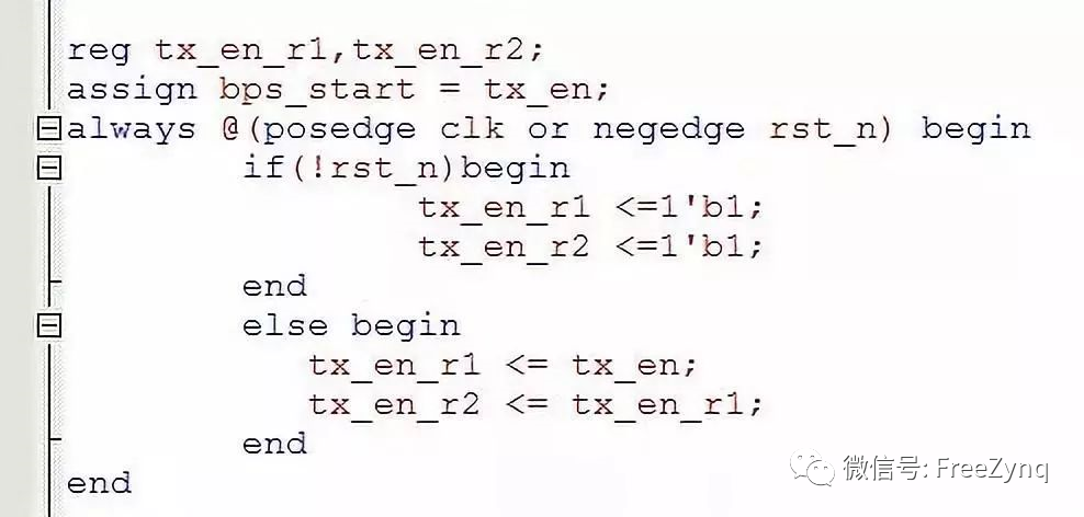4. 在邊沿脈沖檢測的時候,習(xí)慣于檢測下降沿,而這里是檢測tx_en 的上升沿,所以我在復(fù)位清零的時候錯誤的將兩級寄存器賦值為0,實際上在檢測上升沿時要對兩級寄存器復(fù)位時置一,再把最后一級寄存器取反后與上一級相與。
