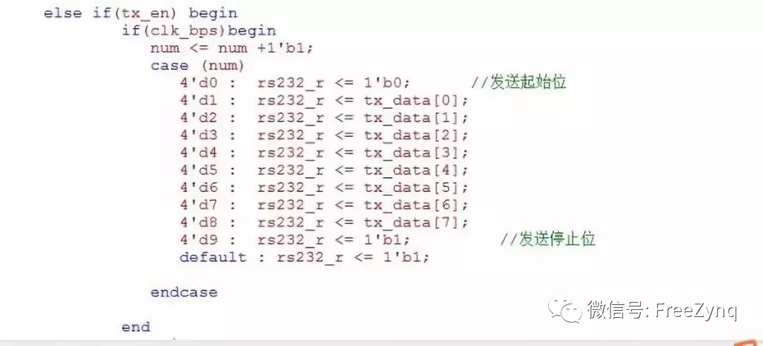 按照之前的例子,當FIFO當中有數(shù)據(jù)時empty就會拉低,我們把它取反后送給發(fā)送模塊,告訴發(fā)送模塊準備發(fā)送,這樣,發(fā)送模塊就會產(chǎn)生一個波特率計數(shù)器啟動信號bps_start給波特率匹配模塊,波特率匹配模塊收到信號后立馬開始匹配計數(shù),并產(chǎn)生采集信號,將采集信號傳給發(fā)送模塊,發(fā)送模塊根據(jù)采集信號,將數(shù)據(jù)一位一位發(fā)送出去。知道了這個原理之后,我們構(gòu)建起這樣一個框架