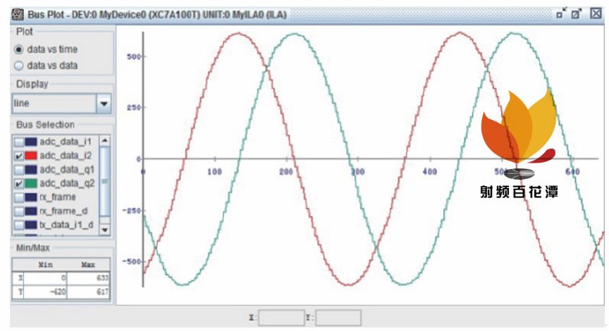 圖6 ChipScope 采集AD9361 的IQ 兩路數(shù)據(jù)