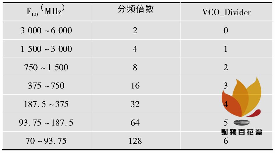 表1 發(fā)射頻率FLO與鎖相環(huán)分頻VCO_Divider 的對(duì)應(yīng)關(guān)系