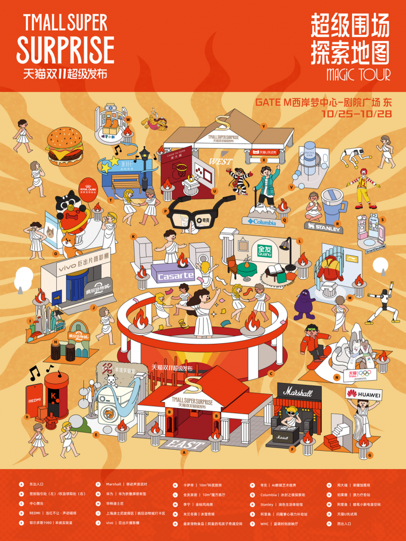 當(dāng)10月28日的“超級(jí)發(fā)布之夜大秀”在線上引爆關(guān)注時(shí),早在三天前,一場(chǎng)同樣精彩的線下體驗(yàn)就已悄然開啟。在上海西岸劇院廣場(chǎng),那座以古希臘美學(xué)為靈感構(gòu)建的天貓「超級(jí)品牌POP圍場(chǎng)」,正以其獨(dú)特的儀式感,迎接每一位前來探索的消費(fèi)者。