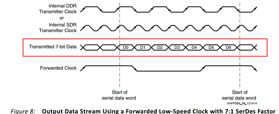 lvds_n_x_1to7_sdr_rx模塊將每一對數(shù)據(jù)差分對轉(zhuǎn)換后的數(shù)據(jù)如下(XAPP585文檔):