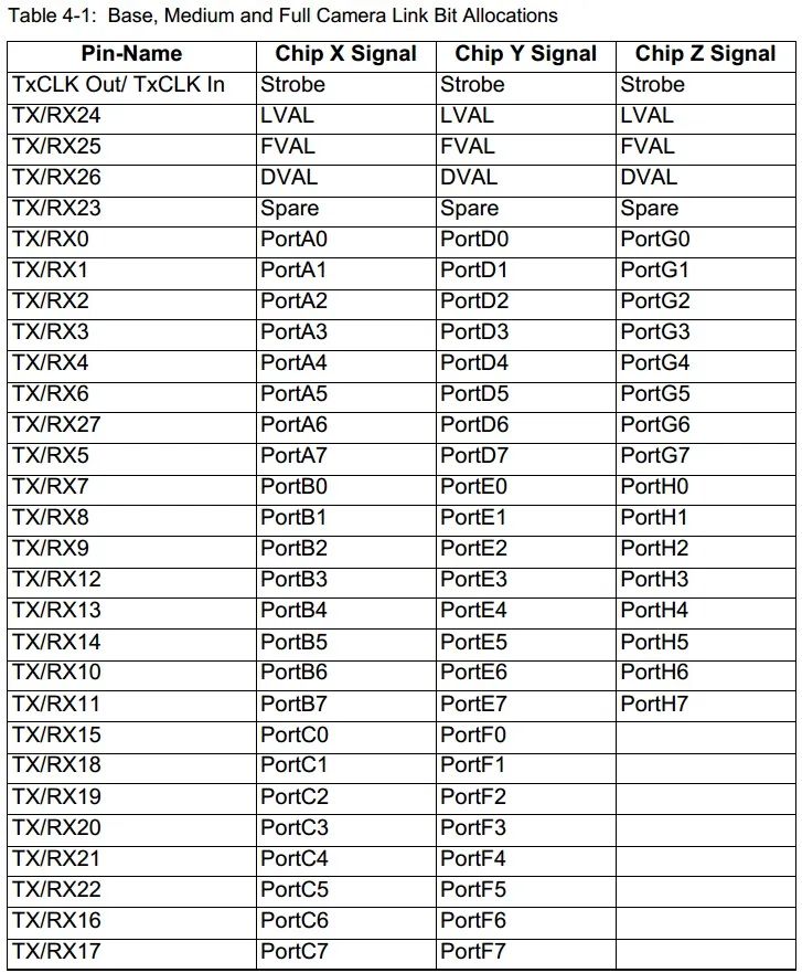 CameraLink(LVDS視頻)協(xié)議標(biāo)準(zhǔn)如下圖所示。