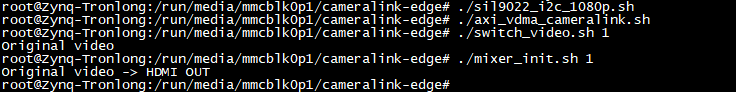 Target# ./axi_vdma_cameralink.sh //初始化VDMA