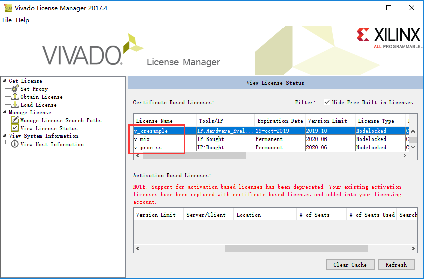 成功導(dǎo)入后,點(diǎn)擊View License Status可以查看新添加的IP核license如下圖。