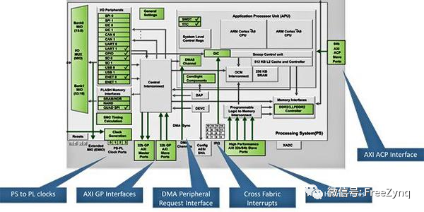 Zynq的 PS 和PL部分通過如下接口連接