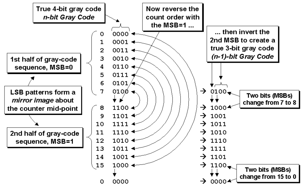 在第1點(diǎn)關(guān)于格雷碼的性質(zhì)中,我們闡述了: