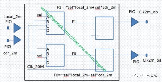 F1 <= local_2m輸入,F(xiàn)0 <= local_2m輸入,local_2m和cdr_2m都是2MHz的方波信號,被一個50MHz的異步時鐘作同步化處理。Verilog代碼為: