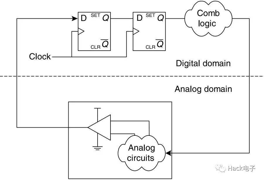 除了純數(shù)字系統(tǒng)外,還有一種混合信號系統(tǒng),這種系統(tǒng)會通常會產(chǎn)生異步反饋信號到FPGA,如圖10所示。